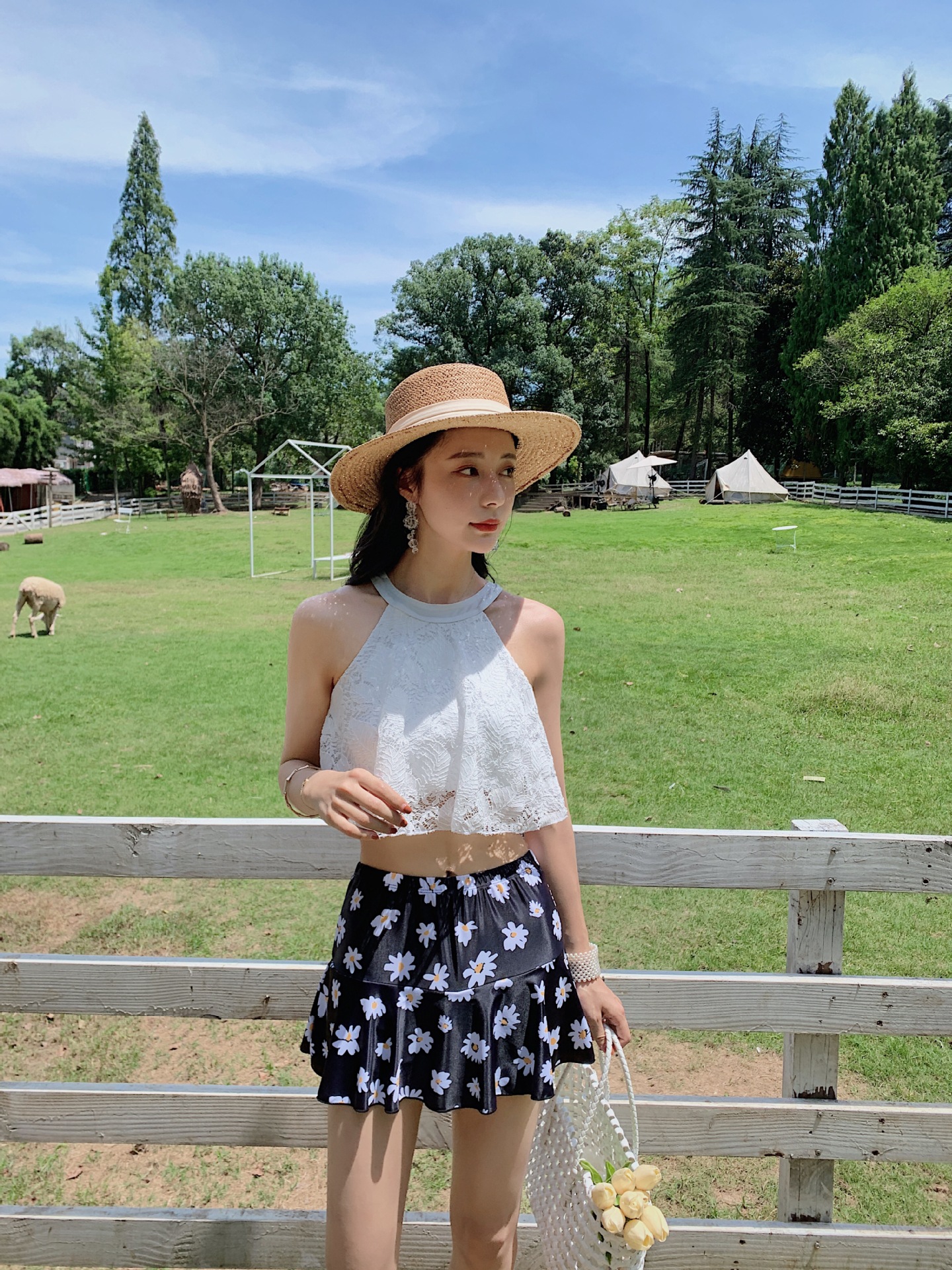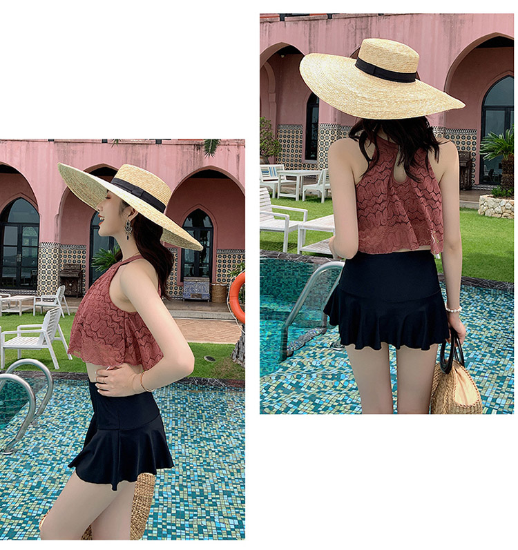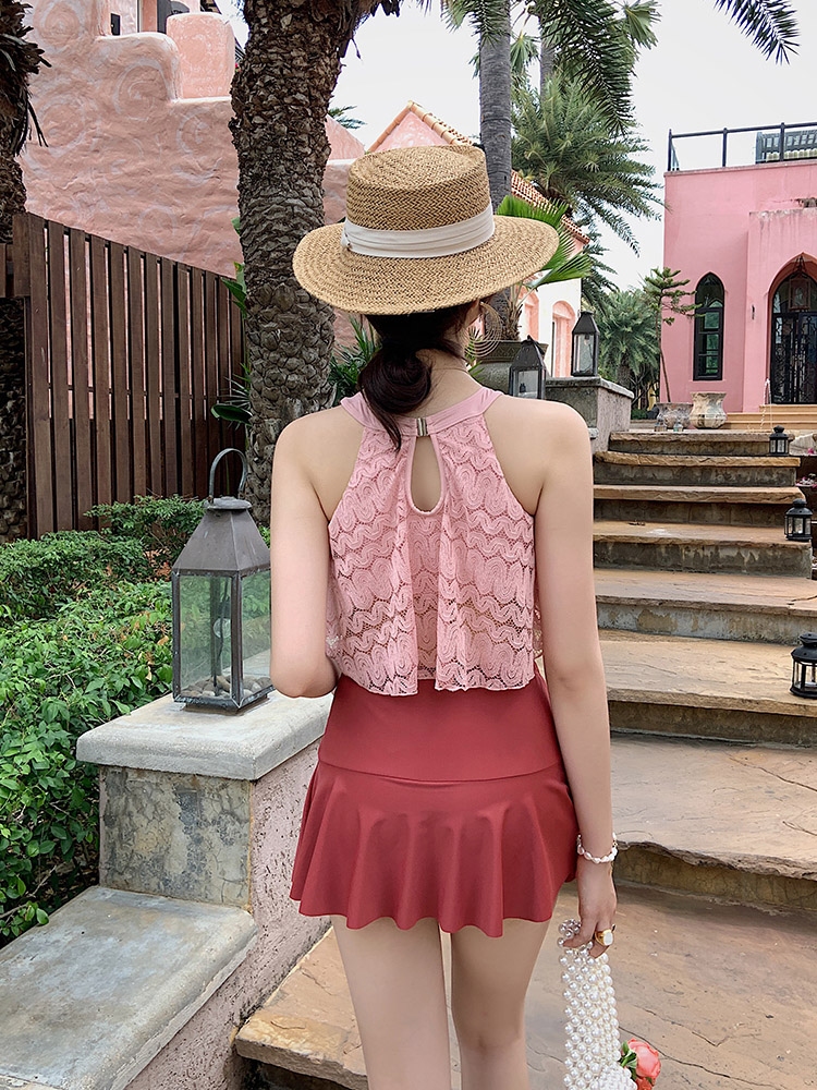 KKimee 【超多顏色】細腰削肩【SG107】二件式【平口褲裙】蕾絲花邊比基尼泳衣 兩截式泳衣 遊泳衣 bikini