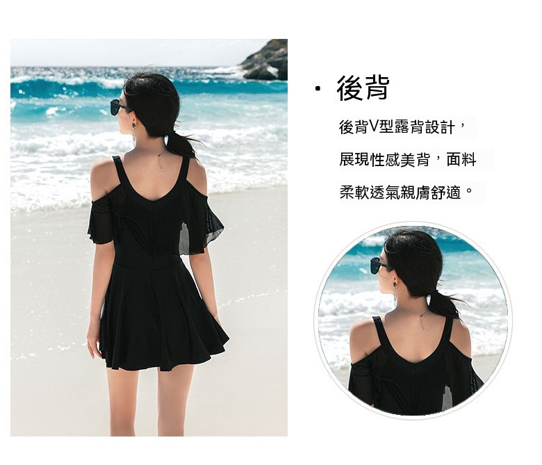 【現貨】【M~3XL】超大尺碼 美背款【露肩 +平口褲+遮手臂】【SG149】泳衣泳裝連身比基尼 遊泳衣 bik