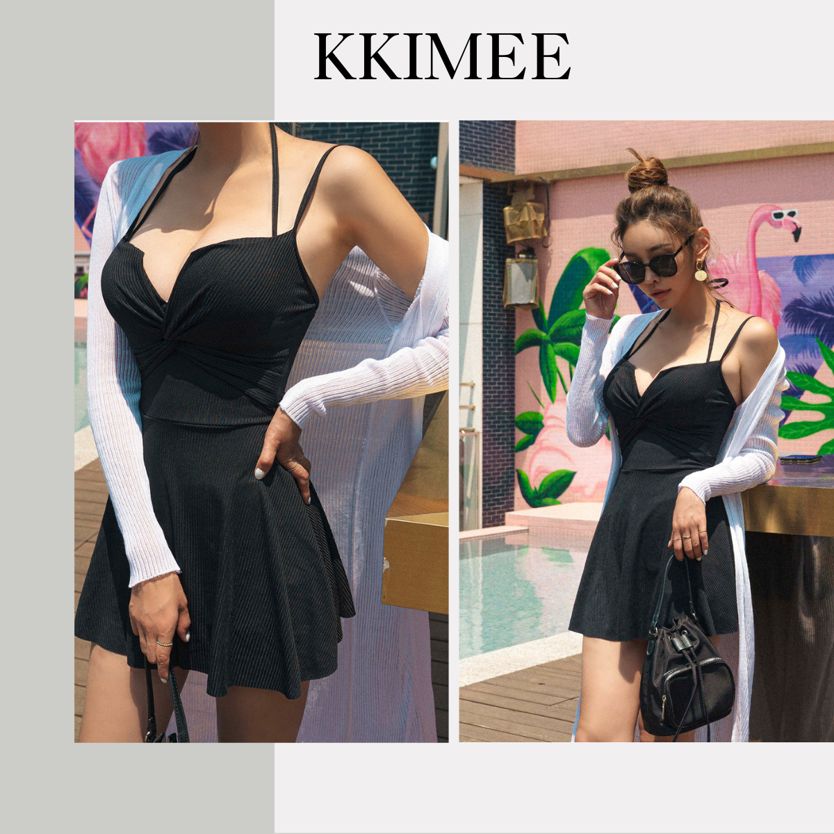 KKimee╭*【現貨】大尺碼顯瘦褲款【深領 +平口褲】【SE206】連身泳衣 泳裝 溫泉 比基尼 遊泳衣 BIKINI