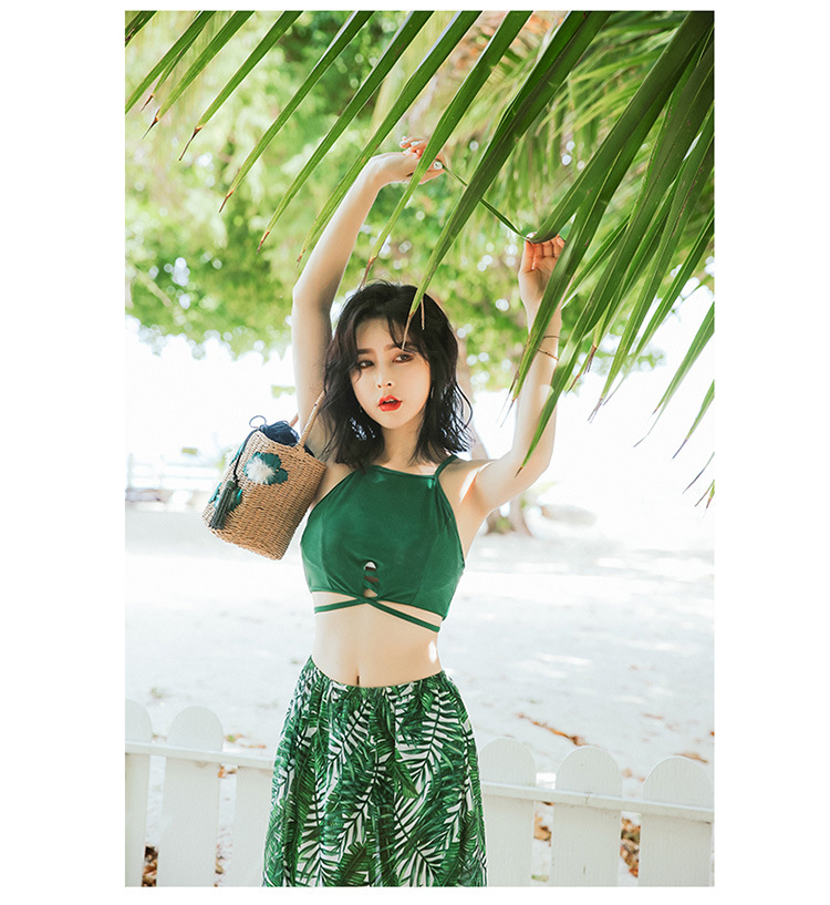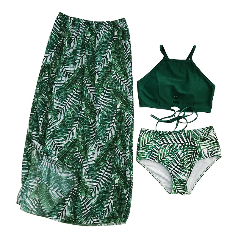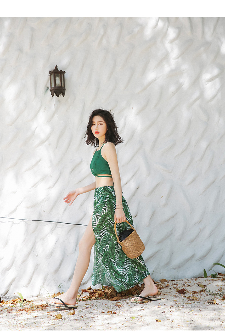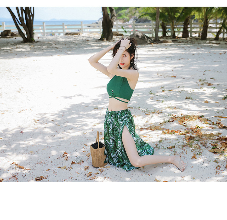 KKimee╭*【現貨】情侶裝 泳衣 削肩【開叉裙】【SG206】顯瘦性感韓系三件式 比基尼 溫泉 遊泳衣 S