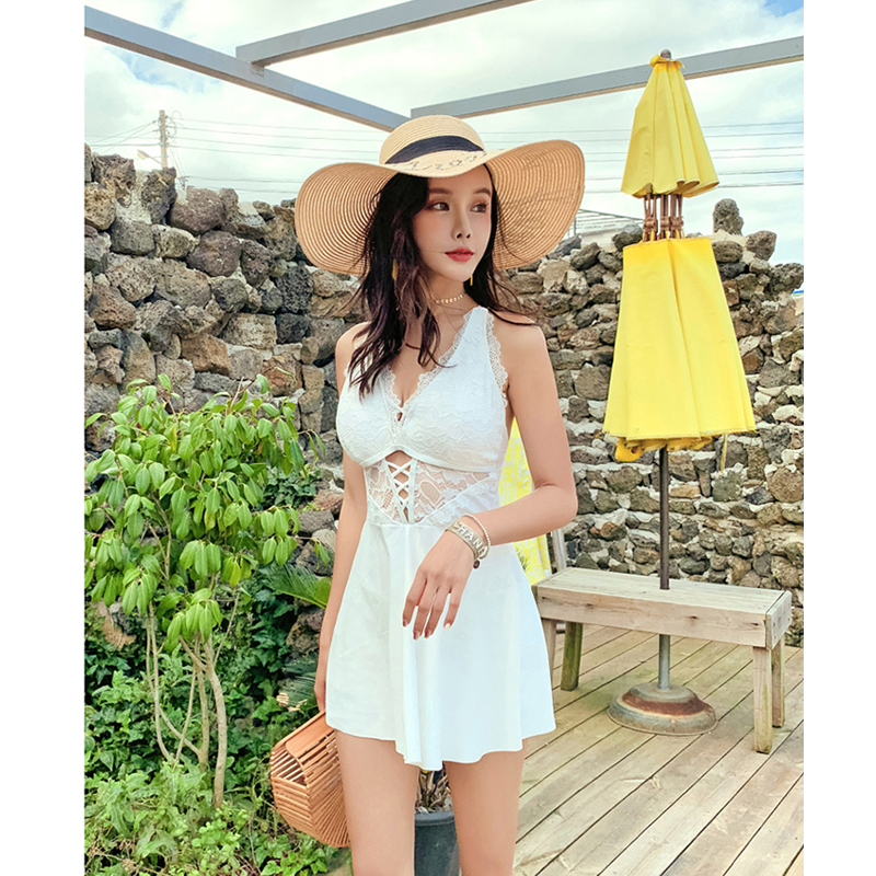 KKimee 【現貨】蕾絲【SB23】【平口褲+修飾大腿+大露背】 連身裙比基尼 BIKINI 遊泳衣 大尺碼 大罩杯