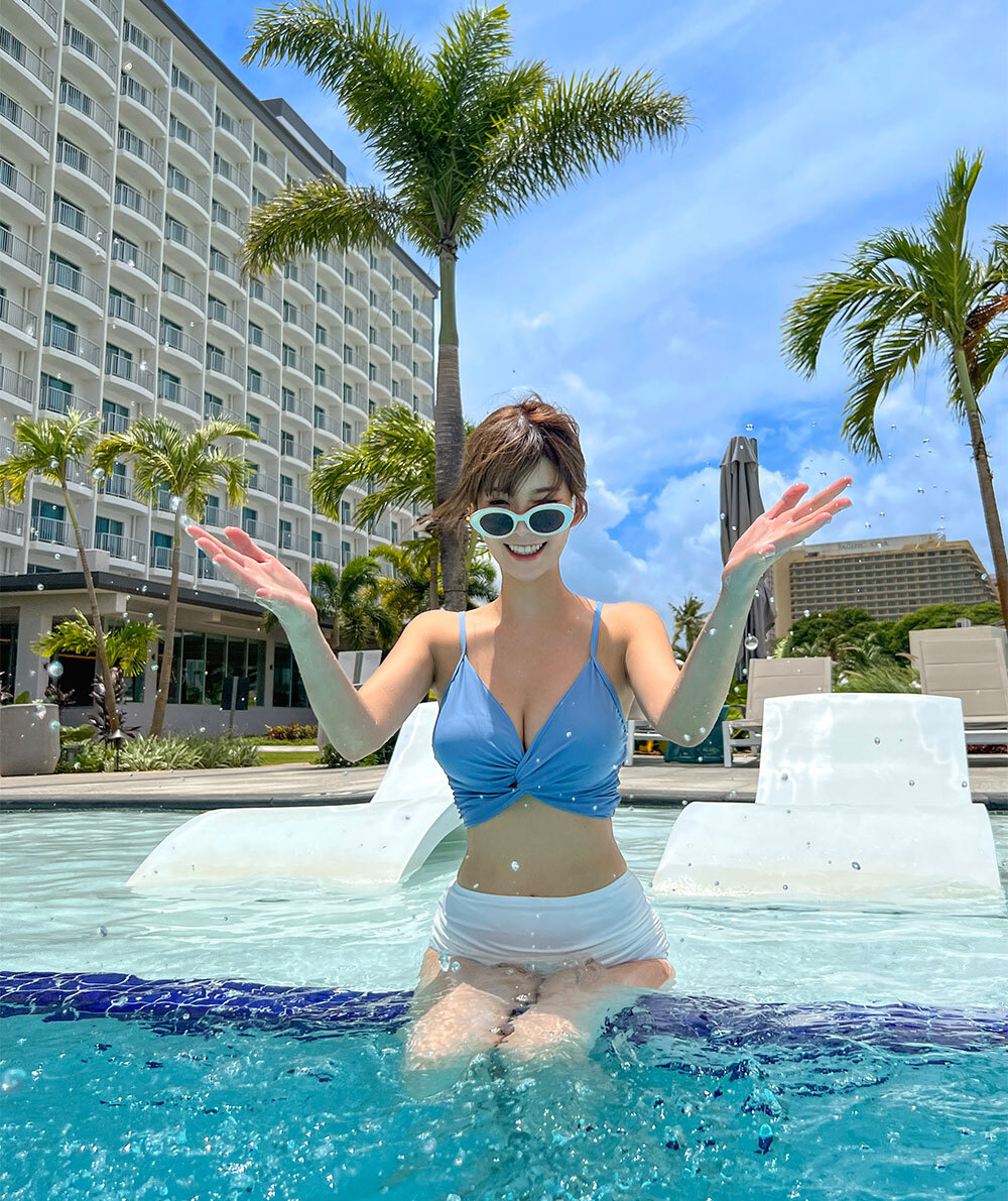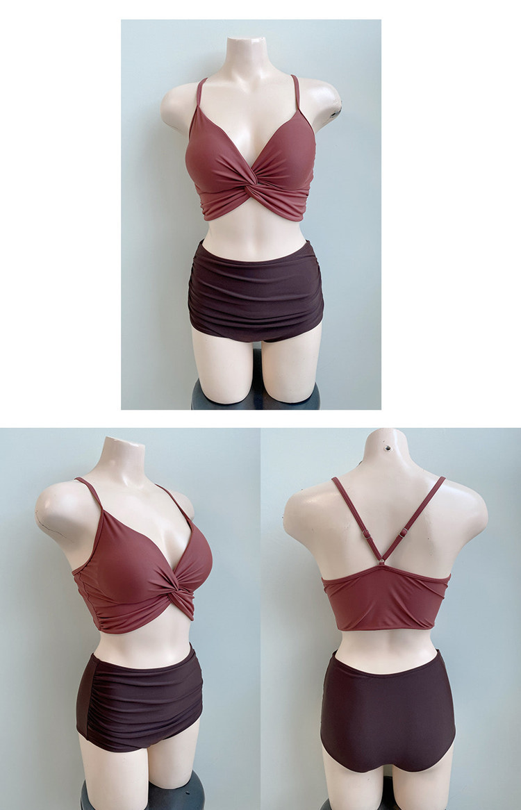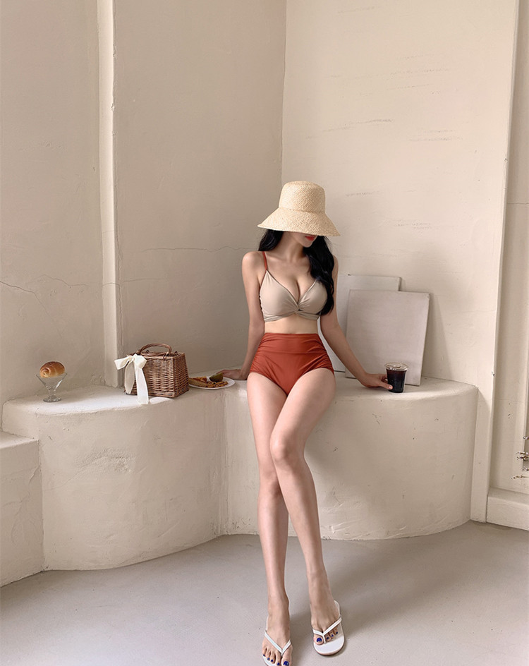 KKimee╭*【現貨】兩件式【高腰+扭結深領】【SE881】比基尼泳衣 兩截式泳衣 BIKINI 泳裝